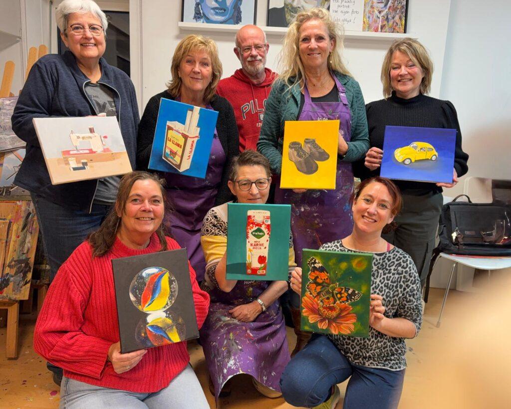Rob de Vries werkt al jaren aan zijn serie schilderijen “Herinneringen aan een fijne jeugd” en krijgt daar altijd leuke reacties op. Van “ik word blij als ik naar je werk kijk” tot mensen die hun eigen fijne jeugdherinneringen delen. Daarom is het de bedoeling dat je eigen object of foto meeneemt waar je een fijne herinnering aan hebt zodat we samen “blije” schilderijen gaan maken.